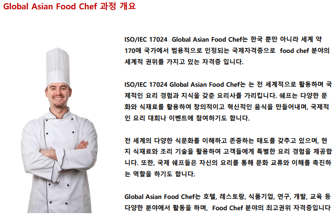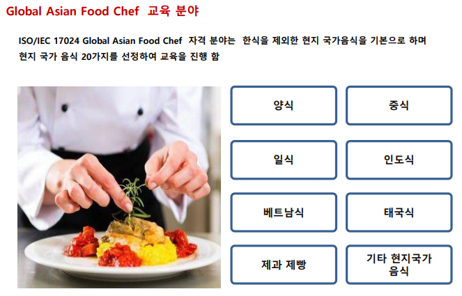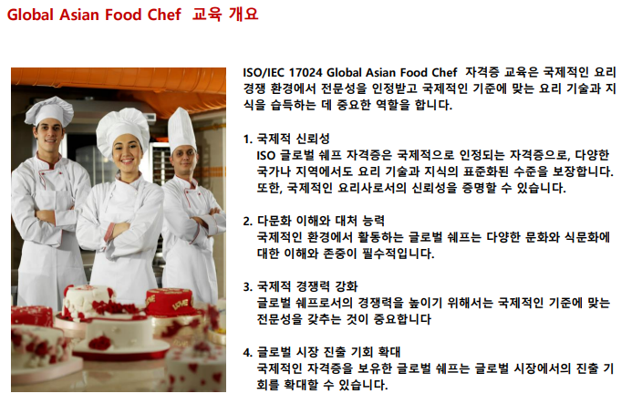 #글로벌아시안푸드쉐프 #ISO17024 #E7비자 #E7비자신청 #주방장해외취업 #조리사해외취업 #베트남 #필리핀 #말레이시아 #방글라데시 #우즈베키스탄 #인도네시아 #캄보디아 #해외송출업 #아이에스비국제교육원