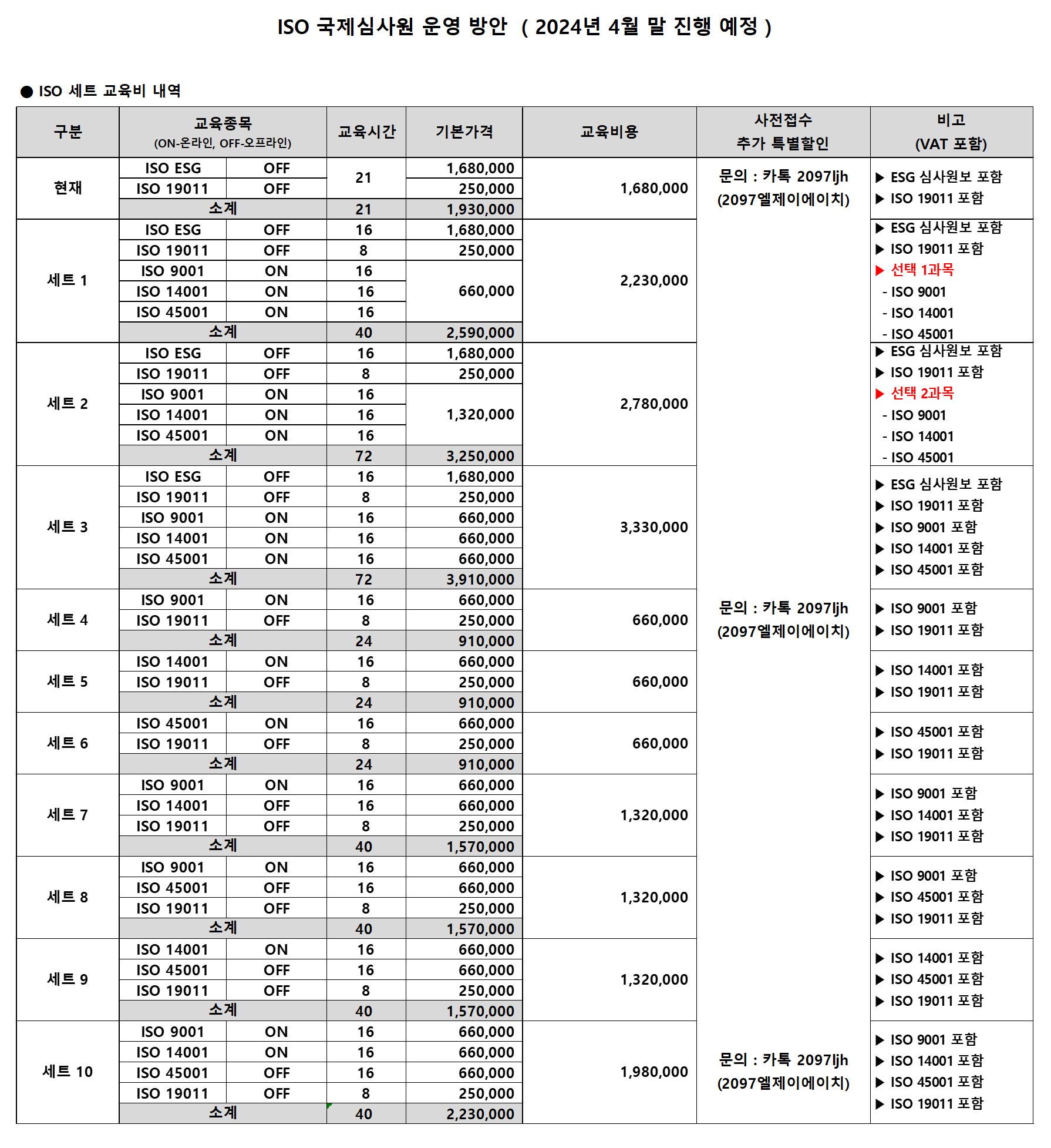 ☞ ['ISO 9001 심사원/ ISO 14001 심사원/ ISO 45001 심사원] 교육과정 중 '2 과목' 선택하실 수 있는